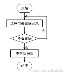 用户选择需要删除的记录后,系统判断是否确认删除。若未确认,返回选择环节;若确认删除,则更新数据库,删除对应记录,完成操作后流程结束。删除信息流程图如图3-8所示。