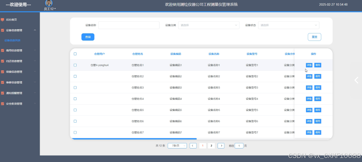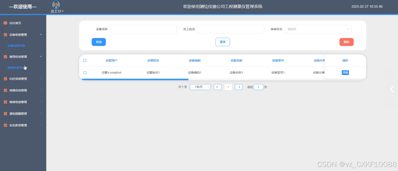 Keywords: surveying instrument company, engineering surveying instrument management system; SpringBoot; MySQL
