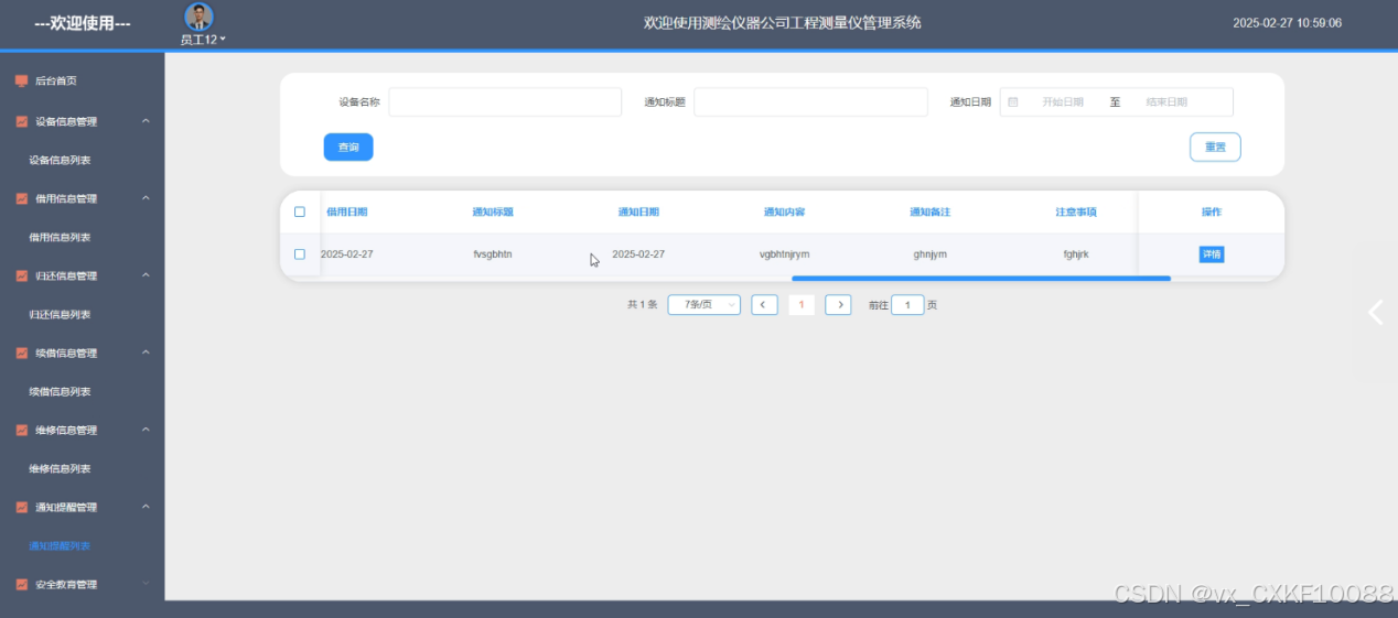 通过系统消息或邮件提醒用户关于设备维护、归还截止日等重要信息,增强沟通效率。员工用户通知提醒管理界面如图5-3所示。