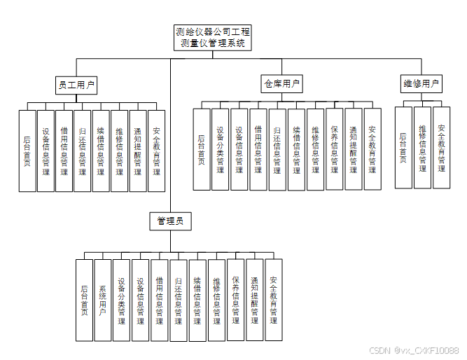 本研究开发了一套基于Spring Boot测绘仪器公司工程测量仪管理系统,采用MySQL数据库确保数据的安全性和一致性。系统实现了管理端与用户端的统一,支持员工、仓管及维修用户的多样化需求。管理员可以全面管理用户账号和权限,并对设备进行分类、信息维护、借用、归还、续借等操作,同时系统也涵盖了维修、保养管理和通知提醒功能,提升了设备使用的灵活性和透明度,增强了内部沟通效率和安全管理。