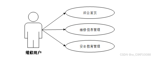 维修用户可查看后台首页、维修信息管理、安全教育管理。