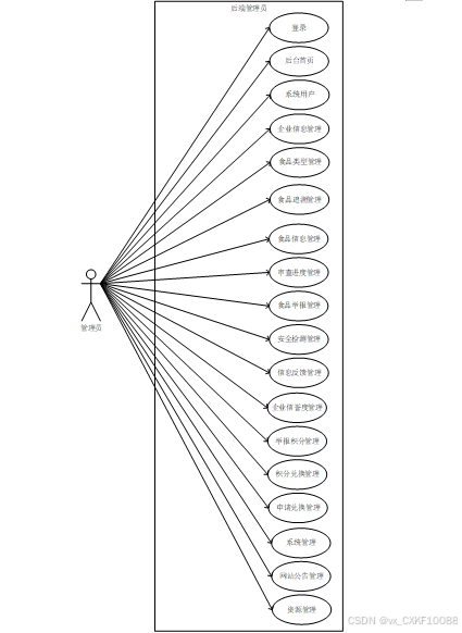 第四章:系统设计,主要对食品监督管理系统功能模块、数据库进行功能设计。