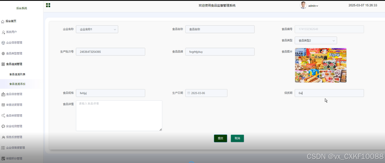 With the growing focus on food safety, traditional regulatory approaches – relying on manual documentation and manual inspections – have exposed inefficiency, opaque information, and difficulty in tracing the origin of food. In order to solve these problems, we have developed a food supervision and management system based on the Spring Boot framework, which aims to improve the efficiency and transparency of food safety supervision using modern technology.