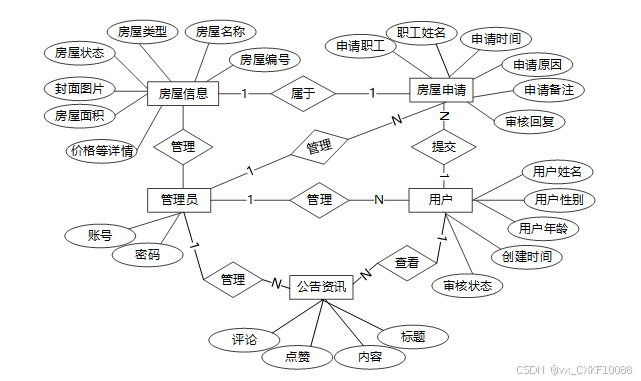 房屋信息:职工可以浏览当前可供申请的房屋,查看房屋类型、面积、价格、地址等详细信息,并提交房屋申请,选择适合自己的住房方案。