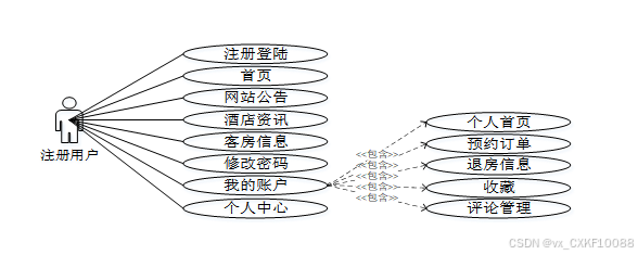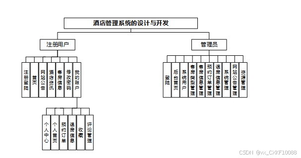 酒店管理系统划分为了注册用户和管理员两大部分。