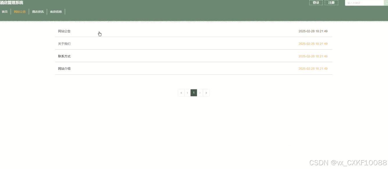 3.网站公告:酒店发布的最新公告将展示在此模块,内容包括酒店活动、政策变动、重要通知等,确保用户及时获得酒店的最新动态。