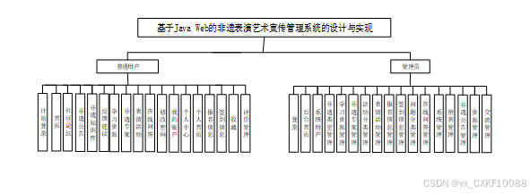 非遗表演艺术宣传管理系统划分为了普通用户模块和管理员模块两大部分。