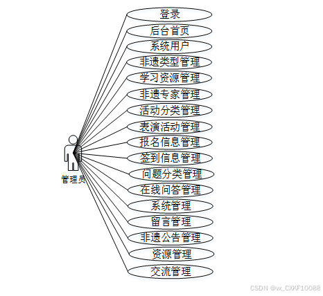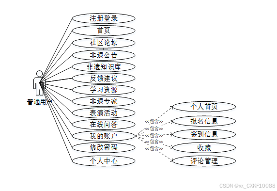 非遗表演艺术宣传管理系统的完整UML用例图分别是图3-1、3-2。