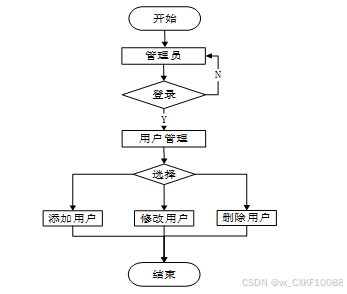 管理员可以在此模块中管理不同类型的用户账户,包括普通用户和管理员账户的创建、编辑、删除和查询。用户管理流程图如下所示。