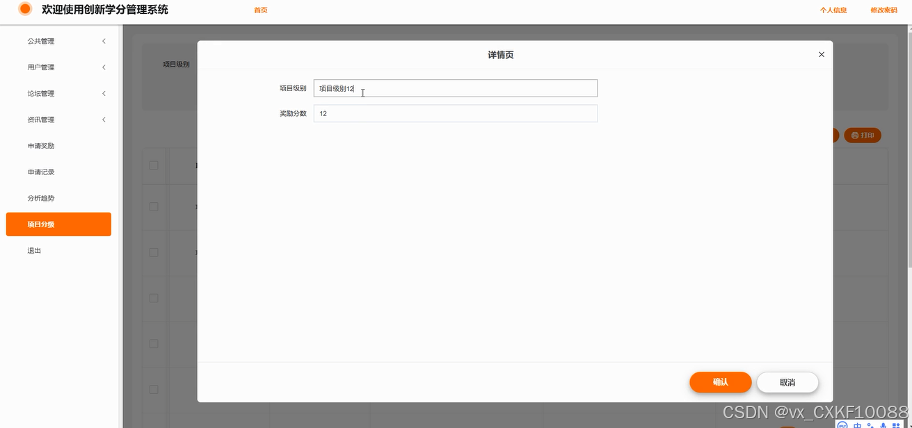 管理员可以对学分奖励项目进行分级管理,设定不同的奖励标准、等级,确保学分管理系统的公平性和合理性。模块如下图所示。