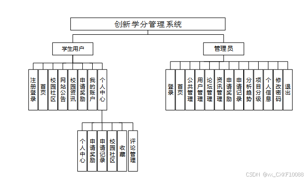 创新学分管理系统划分为了前端模块和后端模块两大部分。