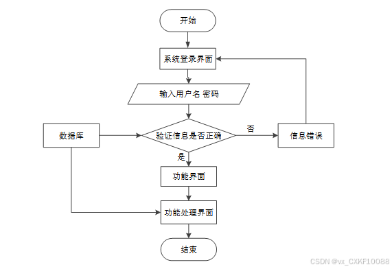 用户访问平台的网站,进入登录页面页面,入其用户名和密码,后端服务接收登录请求,验证用户提供的用户名和密码是否匹配数据库中存储的信息,验证通过即可登录成功。登录流程图如下图所示。