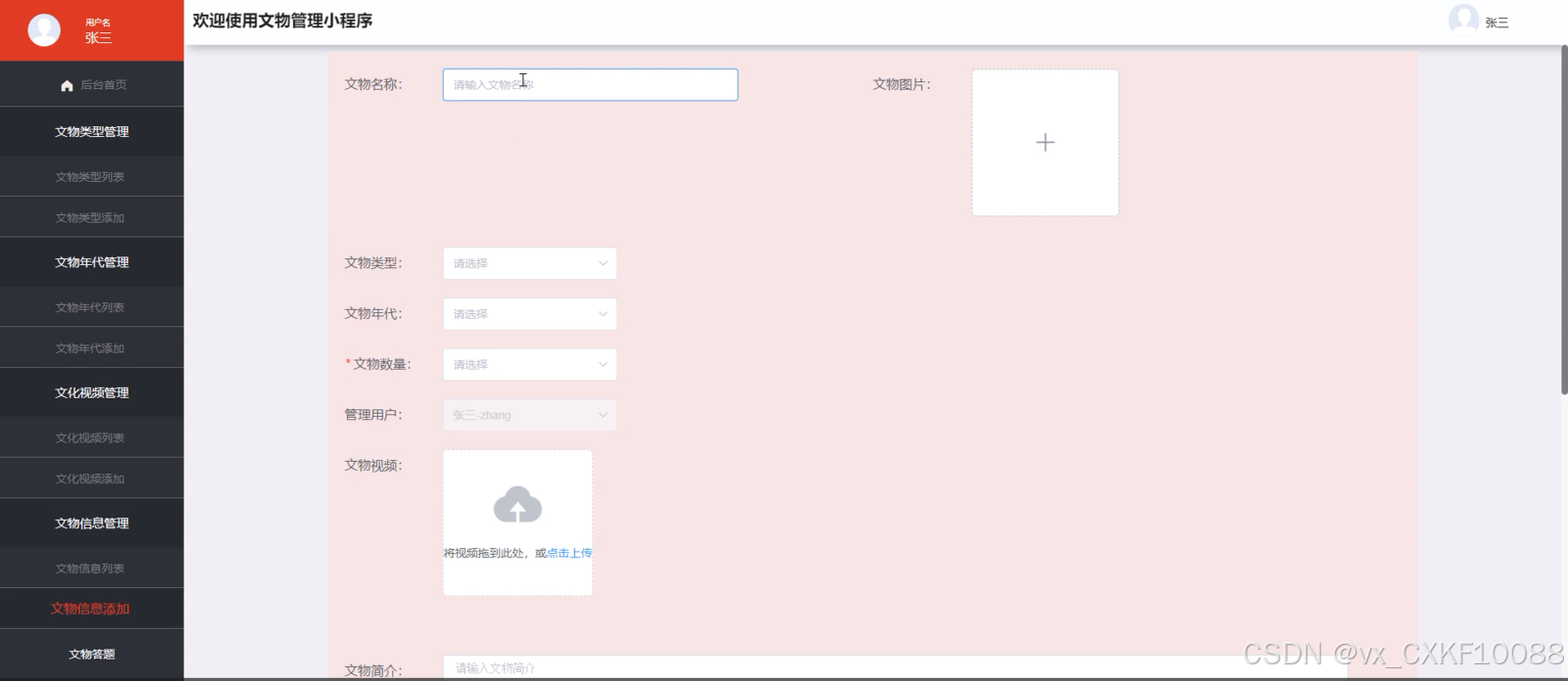 Keywords: cultural relic management; WeChat Mini Program; SpringBoot framework;