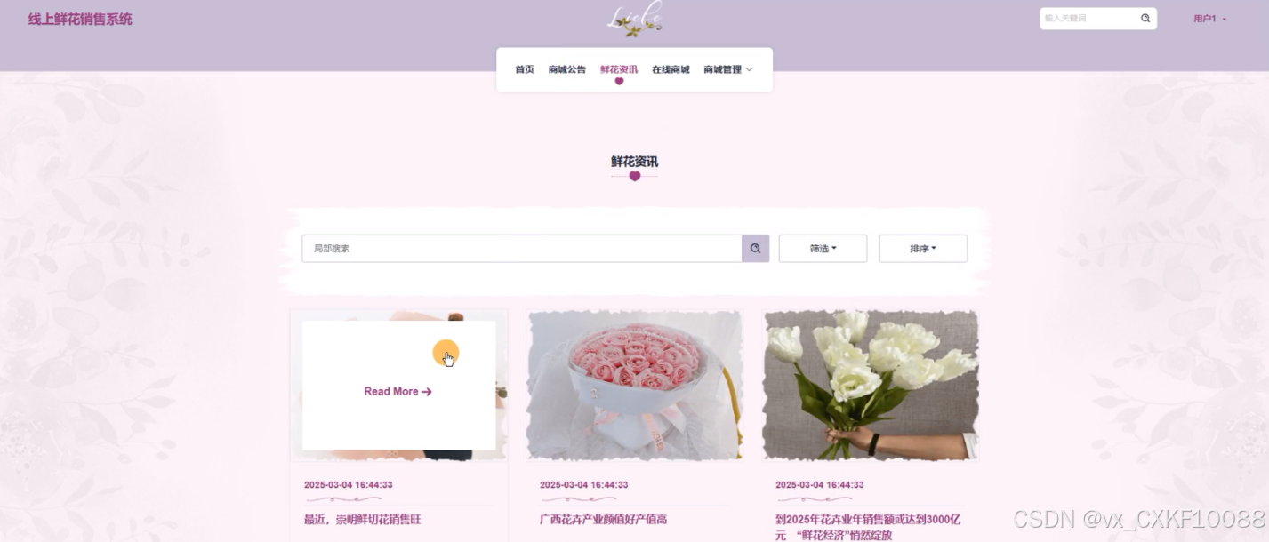 - 鲜花资讯:鲜花资讯板块提供鲜花行业新闻、养护知识、节日鲜花文化等内容。用户可以阅读相关文章,了解鲜花的最新趋势和养护技巧,提升购买体验。
