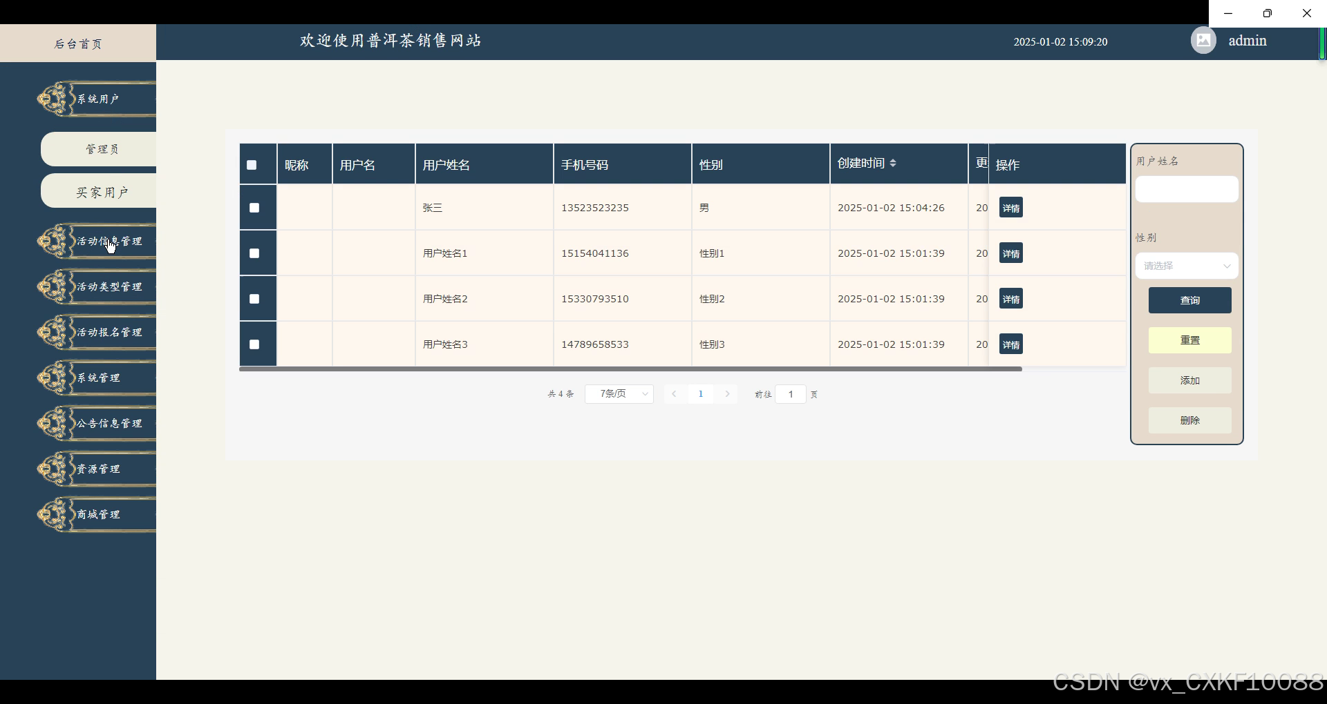 - 系统用户管理:管理员能够管理网站上的用户账户,包括管理管理员权限和买家用户信息。确保用户数据的安全和管理权限的合理分配。