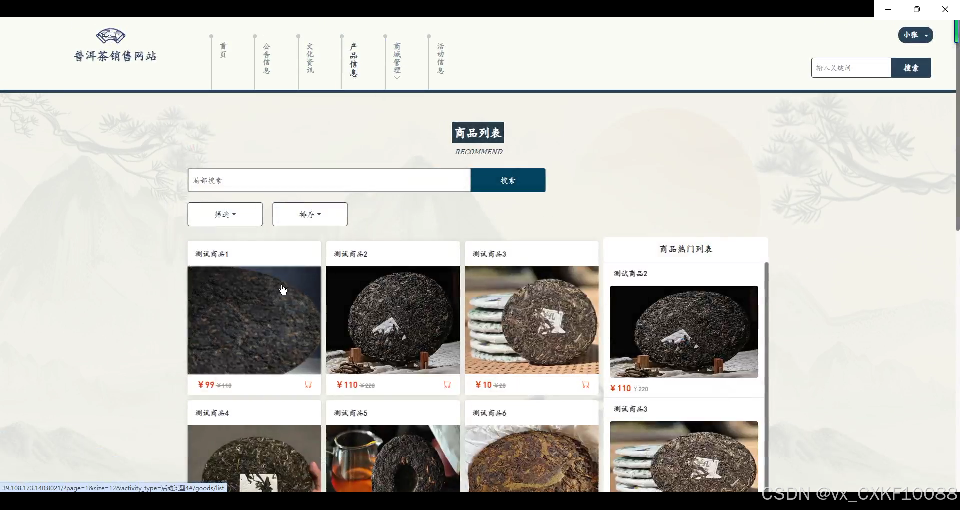 - 产品信息:买家可以浏览各种普洱茶产品的详细信息,查看产品的介绍、价格、规格、产地等,支持按类别、价格、评分等进行搜索和筛选,帮助用户更便捷地找到心仪的商品。