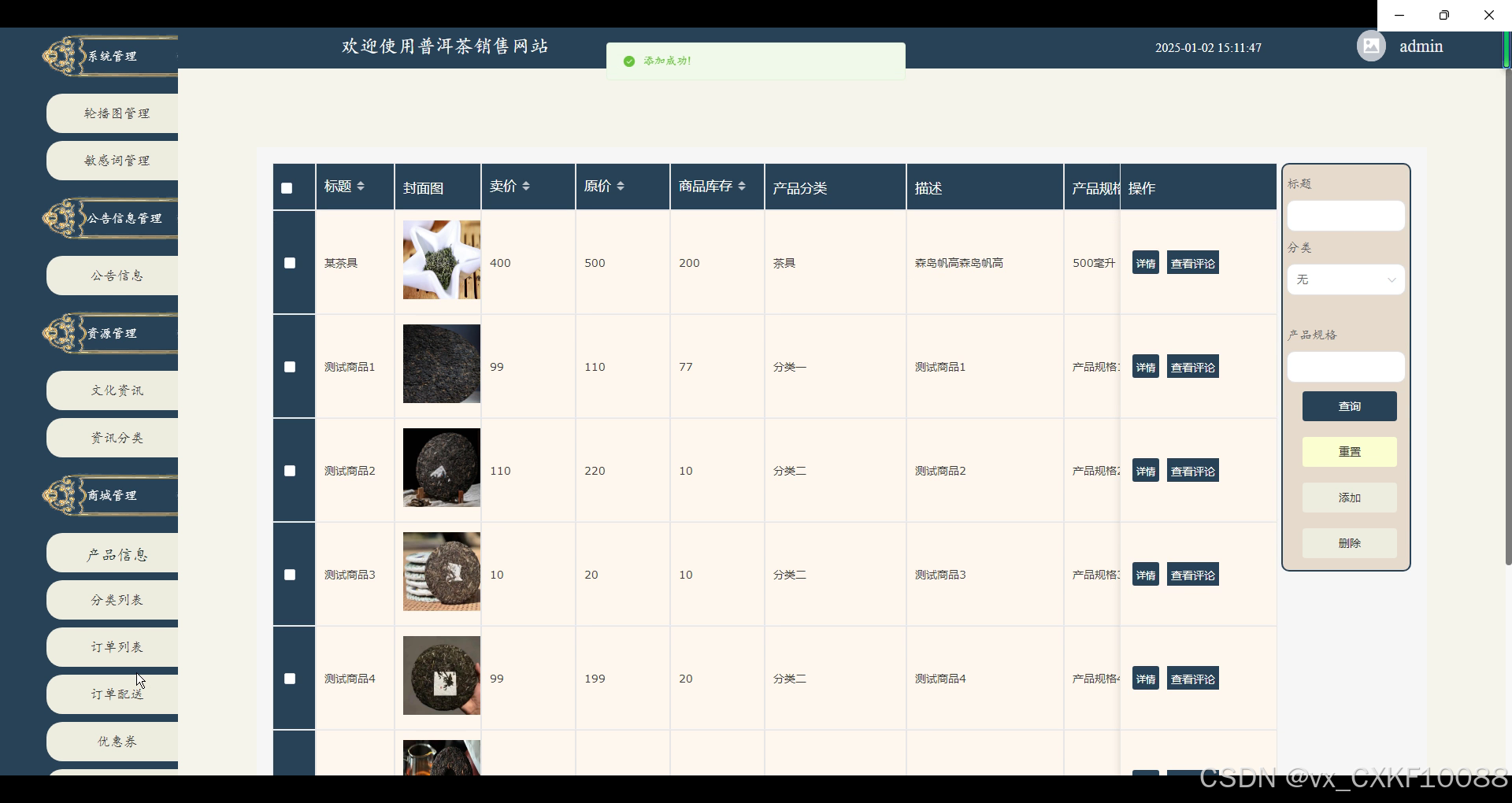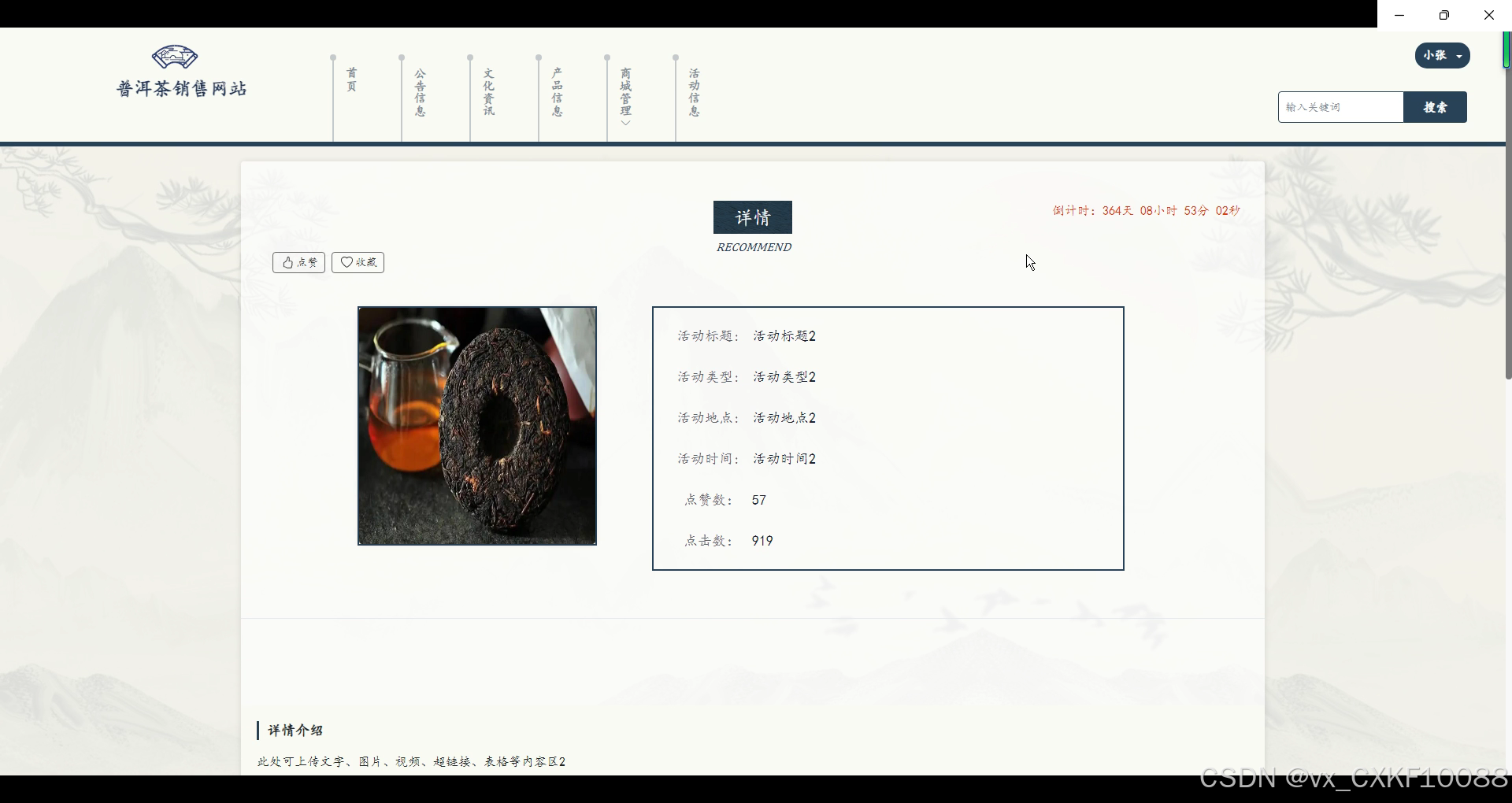 - 文化资讯管理:管理员负责管理普洱茶相关的文化资讯内容,包括编辑、发布和删除相关文章,保持网站文化内容的更新和多样性。