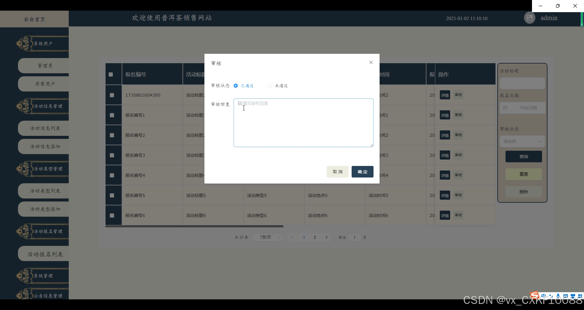 图5.11活动报名审核界面