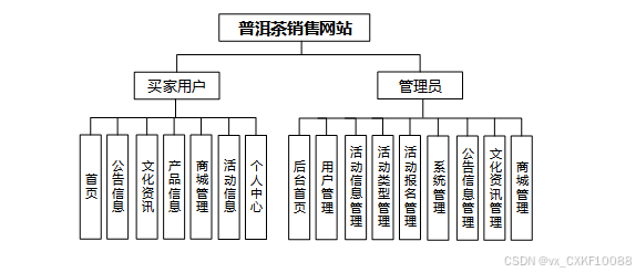 普洱茶销售网站为买家提供首页、公告信息、文化资讯、产品信息、购物车、订单管理、地址和优惠券管理、活动报名等功能,提升购物体验和用户互动。管理员可通过后台管理商品销售统计、用户管理、活动信息、轮播图、敏感词、公告、文化资讯、产品、分类、订单及售后处理,确保网站顺利运营和活动的有效执行。这些功能模块设计旨在优化用户体验和提升商城管理效率。