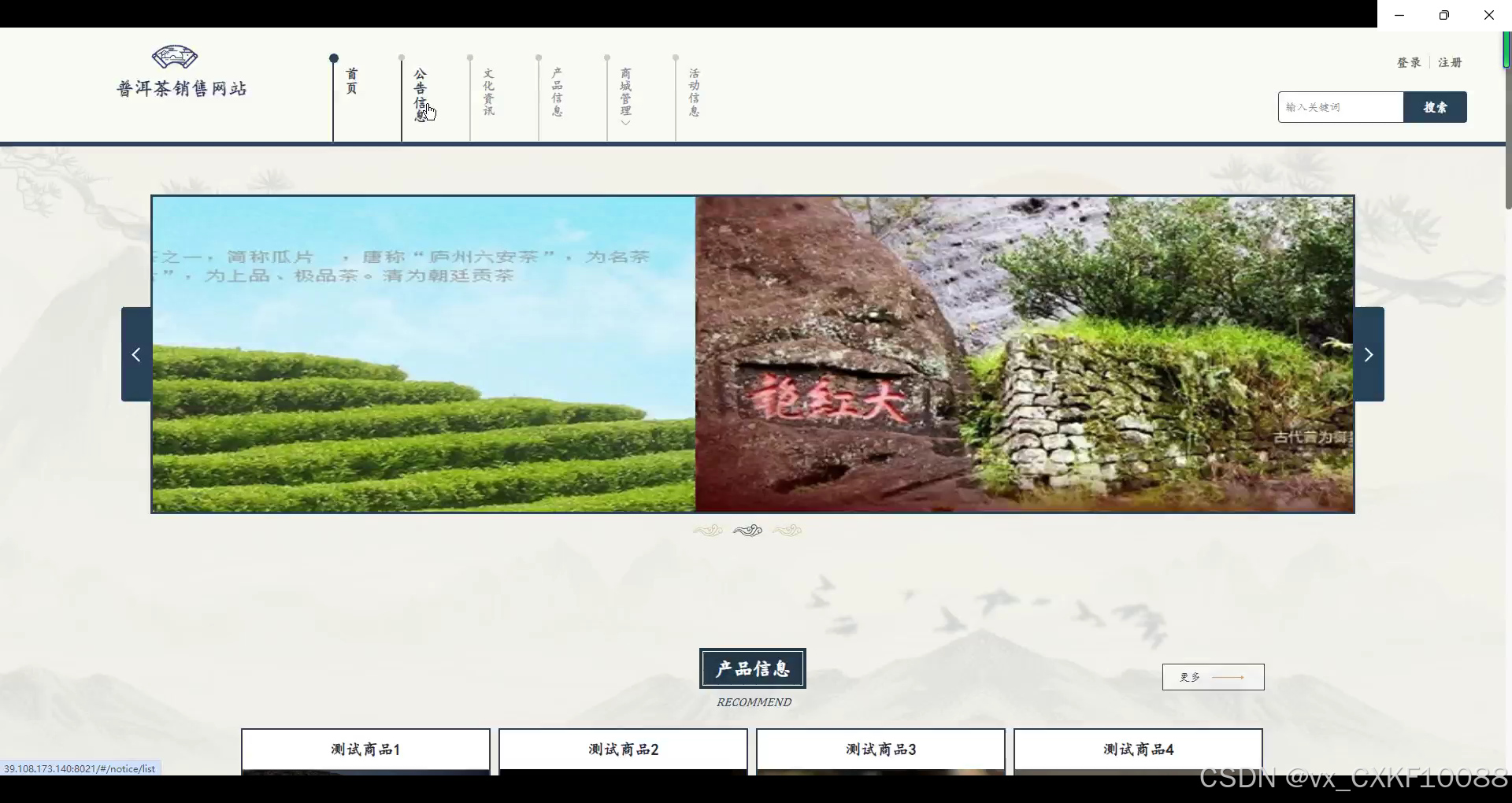 - 首页:买家用户进入网站后,首页展示了最新商品、热销商品以及当前的促销活动。通过直观的布局,用户可以快速浏览各种普洱茶产品,同时还能了解茶文化资讯与相关推荐,增强购物体验。