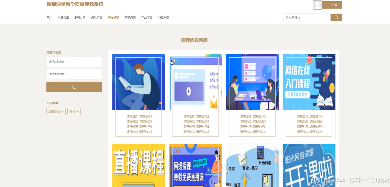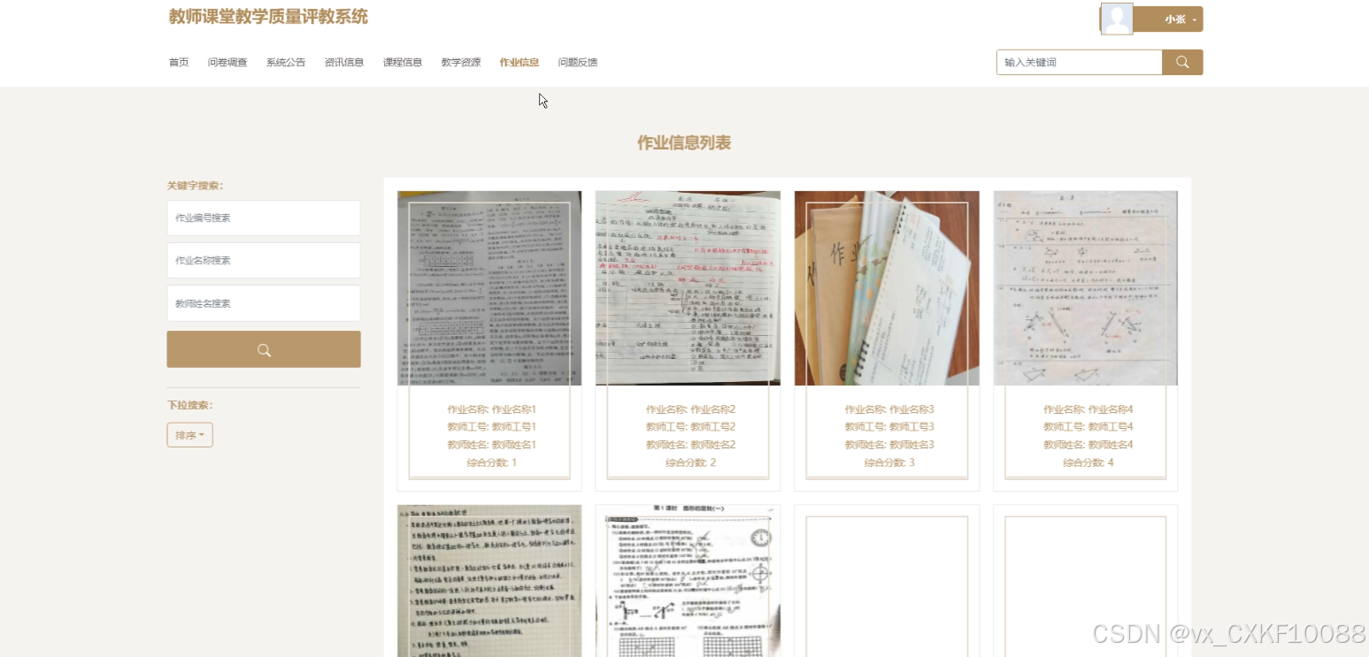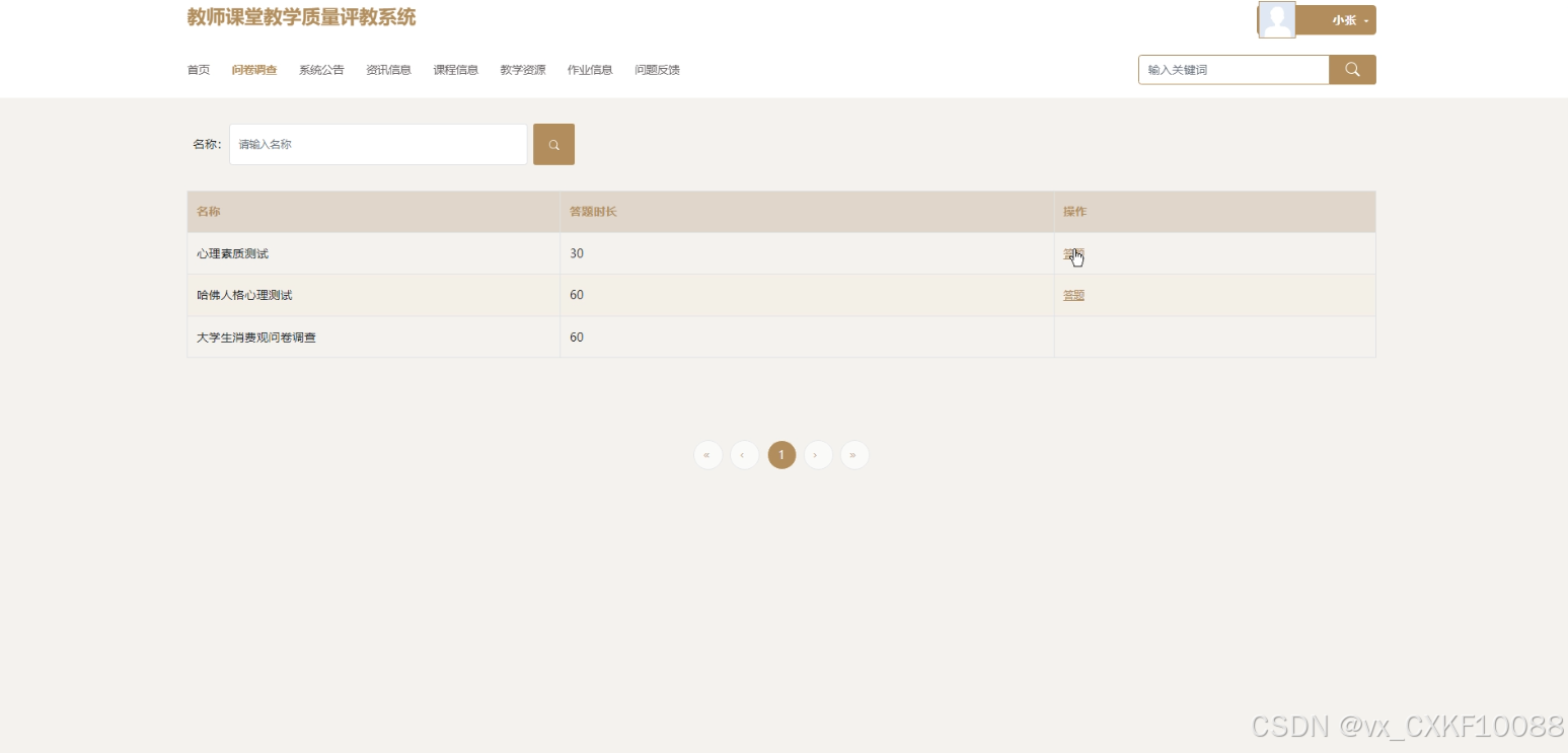 随着信息技术的快速发展,传统教学评价模式主要依赖纸质问卷和人工统计,效率低且数据易出错。为解决这些问题,设计基于SSM框架的教师课堂教学质量评教系统。系统前端采用SpringBoot技术,后端基于SSM框架,数据库选用MySQL。学生可进行问卷调查答题与查看、课程评价与收藏、教学资源查询与评价、作业信息查询与提交等操作;教师可参与问卷调查、管理课程信息、教学资源、进行自评与互评;管理员负责课程信息、教学资源、作业信息、问题反馈及问卷调查的管理,支持数据查询、删除、重置、审核等功能。