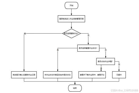 | 管理员作业信息管理功能测试 | 管理员登录系统,进入作业信息管理页面,选择一个作业并重置状态,查看作业状态 | 系统提示状态重置成功,作业状态更新为初始状态 | 与预期结果一致 |