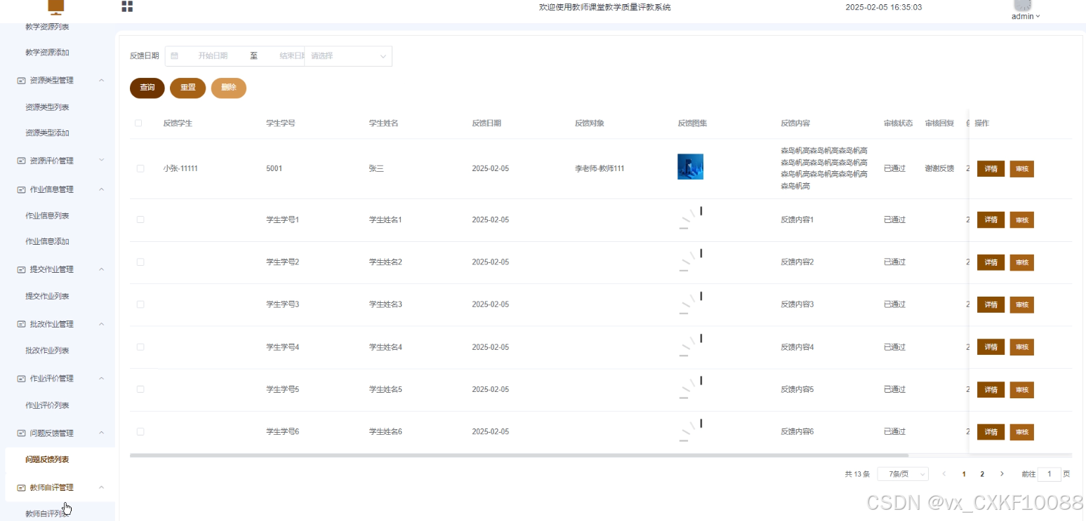 管理员可审核反馈内容,确保问题描述清晰。管理员可回复学生反馈,提供解决方案。