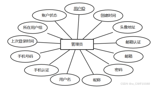 概念设计是数据库设计的第一步,其主要目标是对系统的数据需求进行全面的理解和抽象[18]。在这一阶段,通过建立实体-关系模型(ER模型)来识别系统中的关键实体、属性及其相互关系。概念设计的输出是一个清晰的ER图,作为后续数据库表设计的基础。以下将展示系统的全局E-R图以及各个实体的属性图。