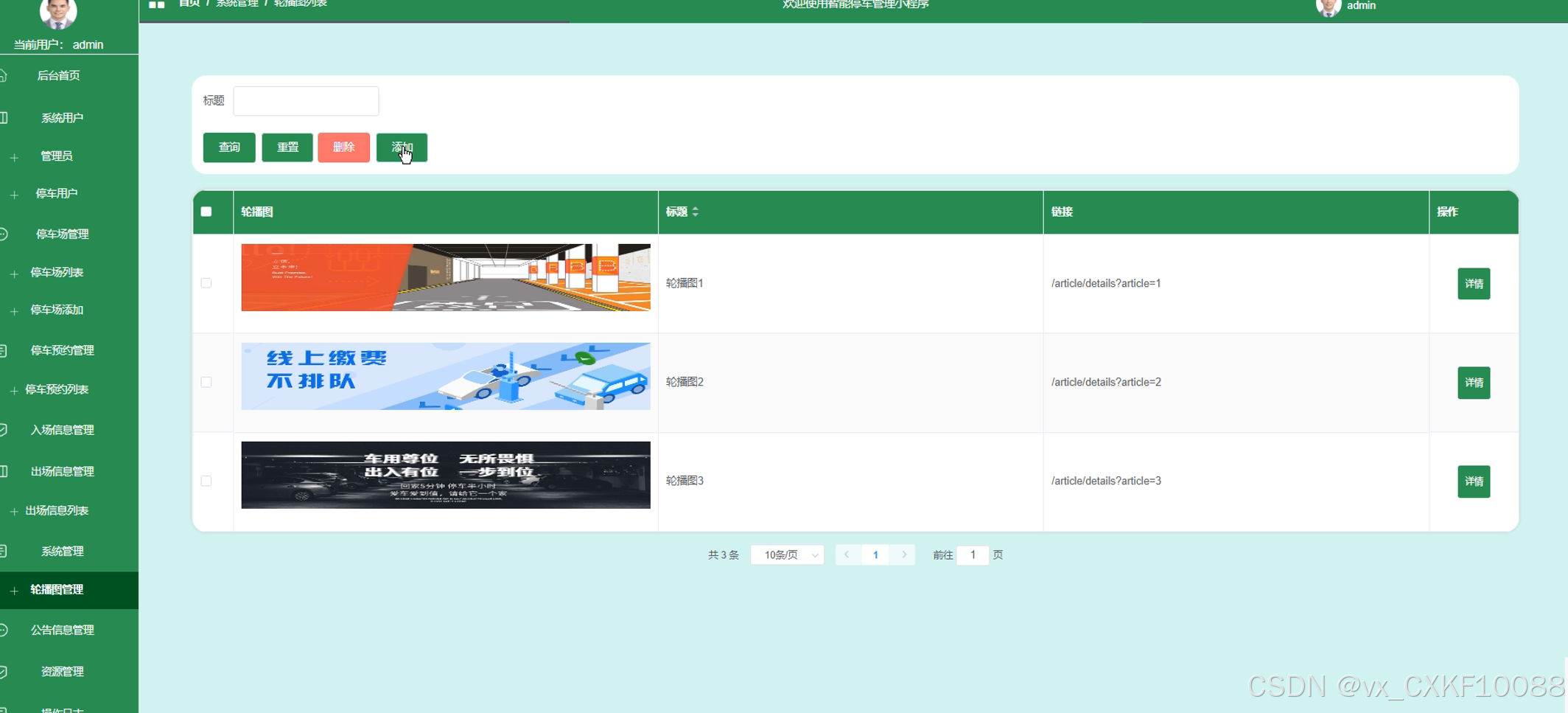 (8)系统管理:轮播图管理:上传、编辑或删除首页轮播图。