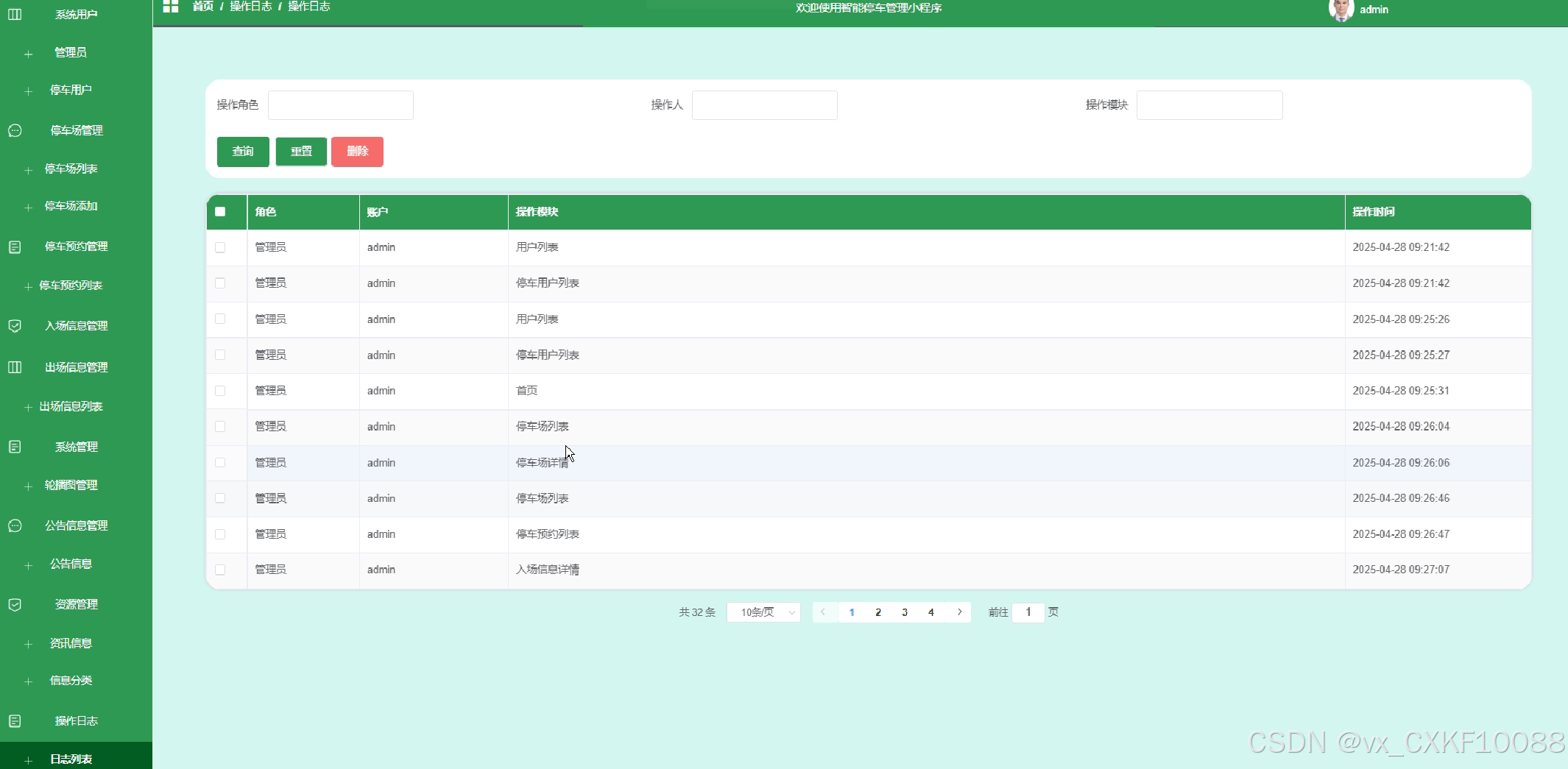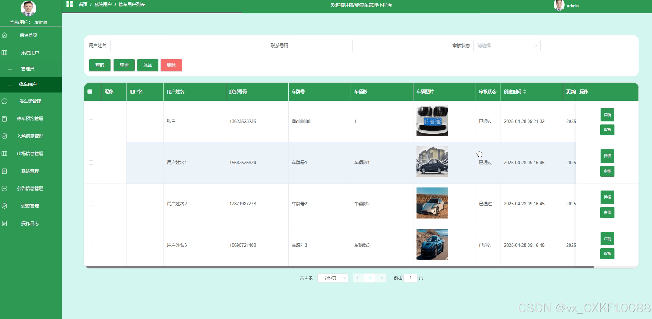 (3)停车用户:查看用户列表,包括用户的预约记录、入场和出场信息等。