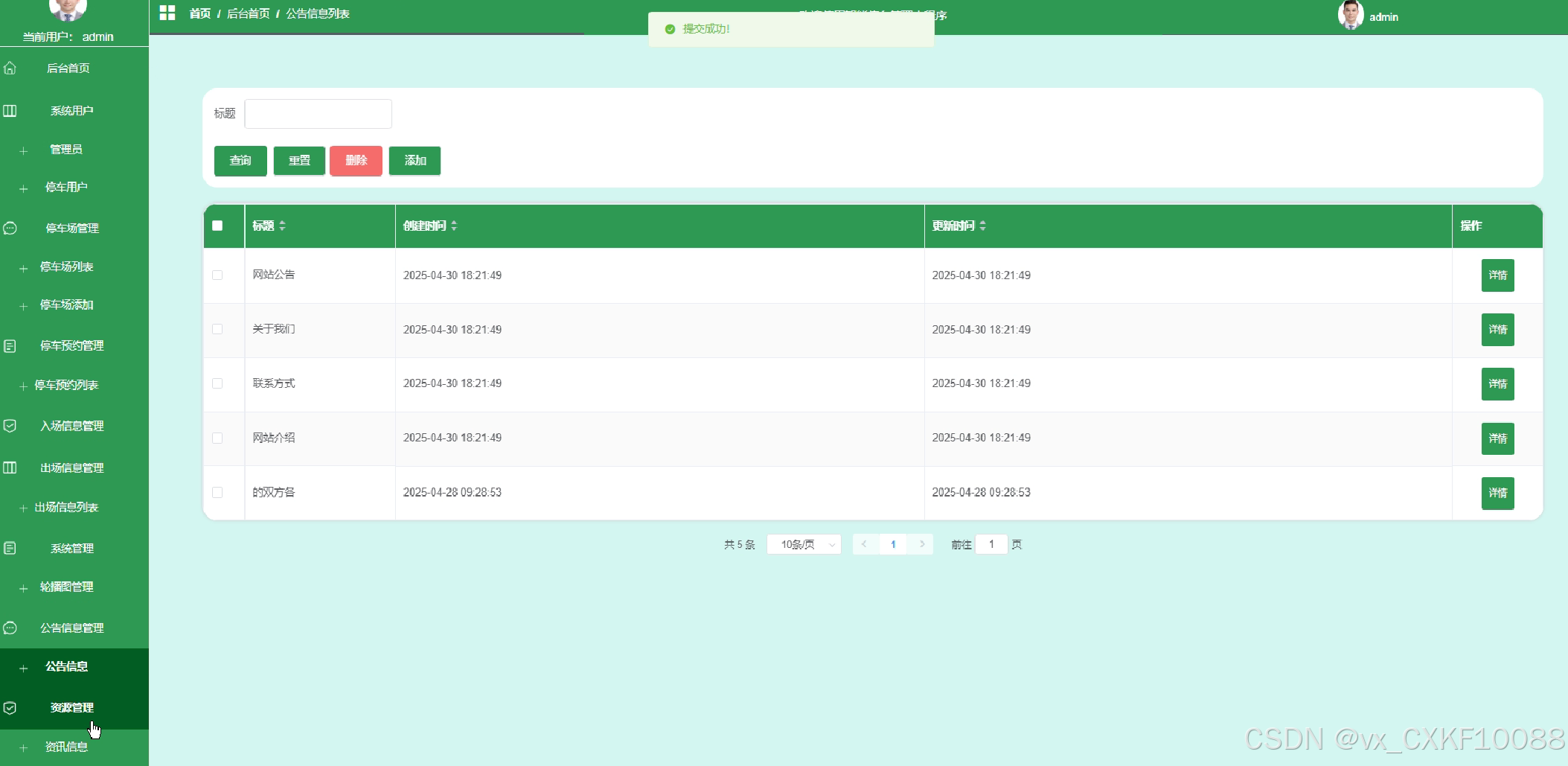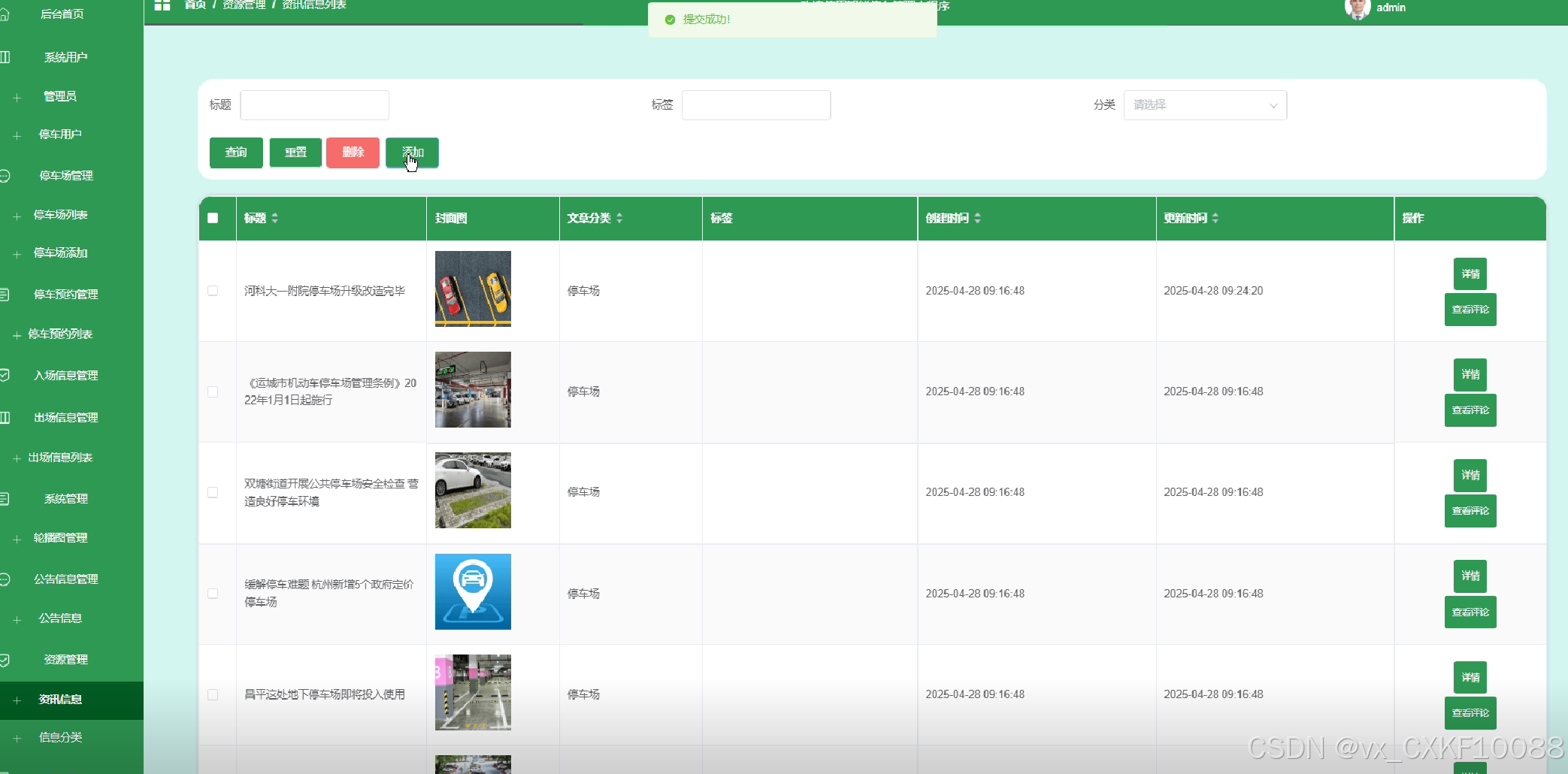 - 资讯信息:发布和管理关于停车技巧、交通规则等相关资讯。