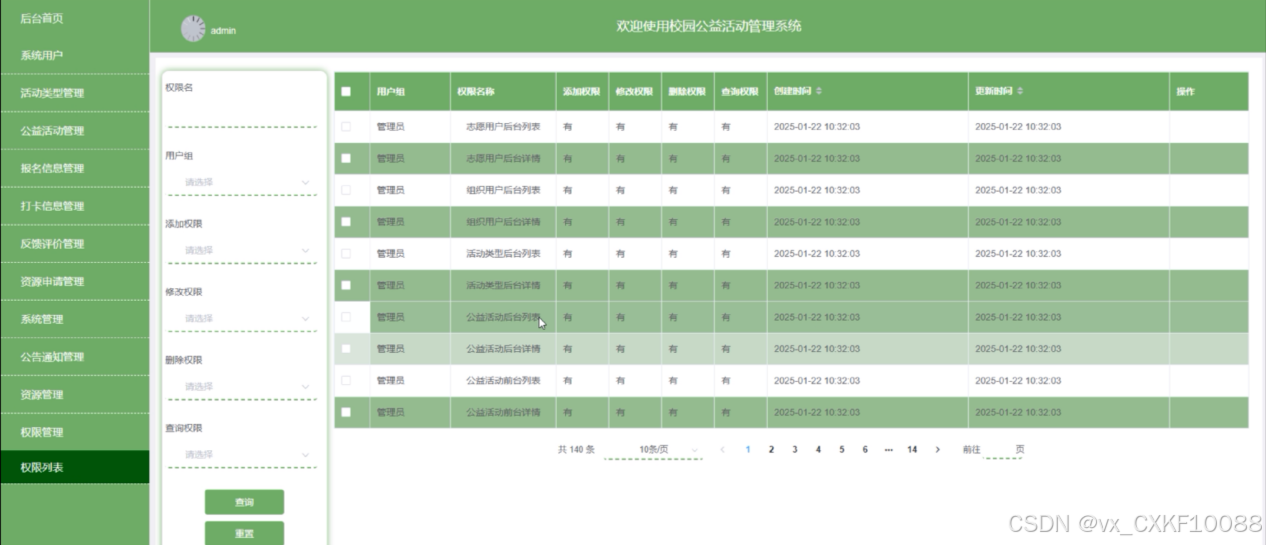 权限管理:管理员可以对不同用户角色进行权限设置,控制不同用户的操作权限和访问范围。界面如下图所示。