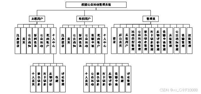 本文介绍了一种基于SpringBoot框架开发的校园公益活动管理系统,旨在提升校园公益活动的组织效率和参与度。该系统通过集成用户注册与登录、活动信息发布与管理、资源申请及反馈评价等功能模块,为志愿用户、组织用户和管理员提供了全面的服务支持。志愿用户可以方便地浏览并报名参加各类公益活动,组织用户能够发布和管理活动信息,并申请所需资源,而管理员则负责系统的整体运维和数据统计分析。系统采用模块化设计,确保了功能的灵活性和扩展性,同时提升了用户体验和管理效率。
