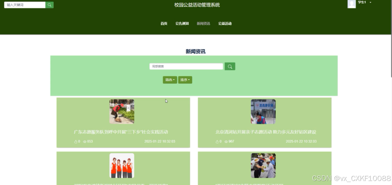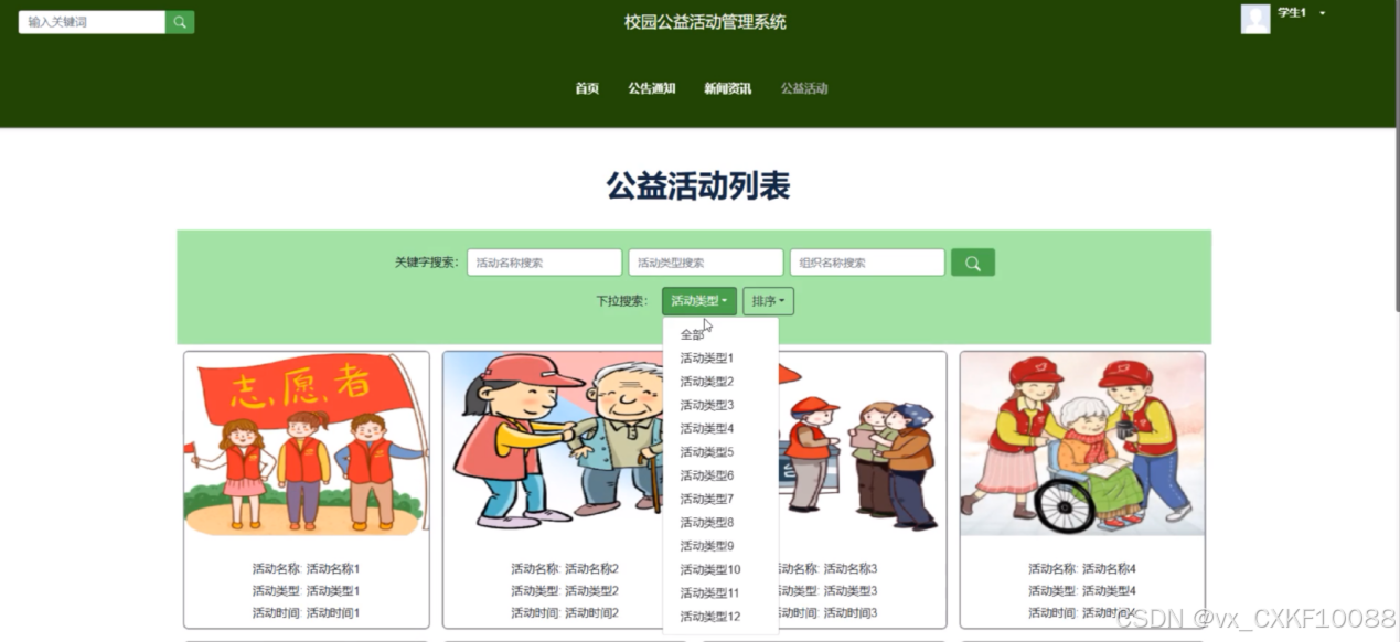 | 公益活动浏览功能测试 | 1. 打开公益活动浏览页面。 | 页面正常加载,显示公益活动列表。 | 与预期结果一致。 |