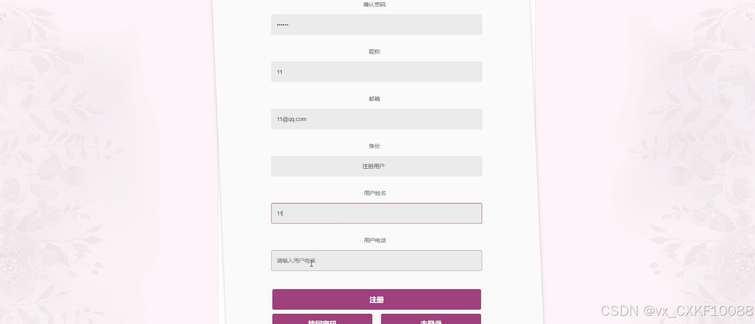 前端注册用户模块: