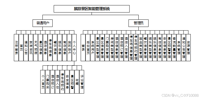 旅游景区智能管理系统划分为了前端模块和后端模块两大部分。