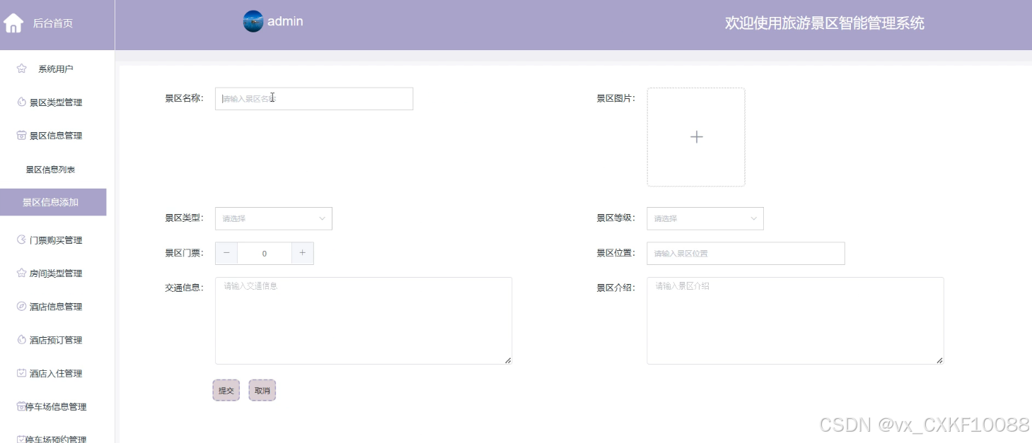 - 景区信息管理:管理员可以添加新的景区信息,删除或查询现有信息,并查看游客对各个景区的评论,以便对景区信息进行维护和更新。