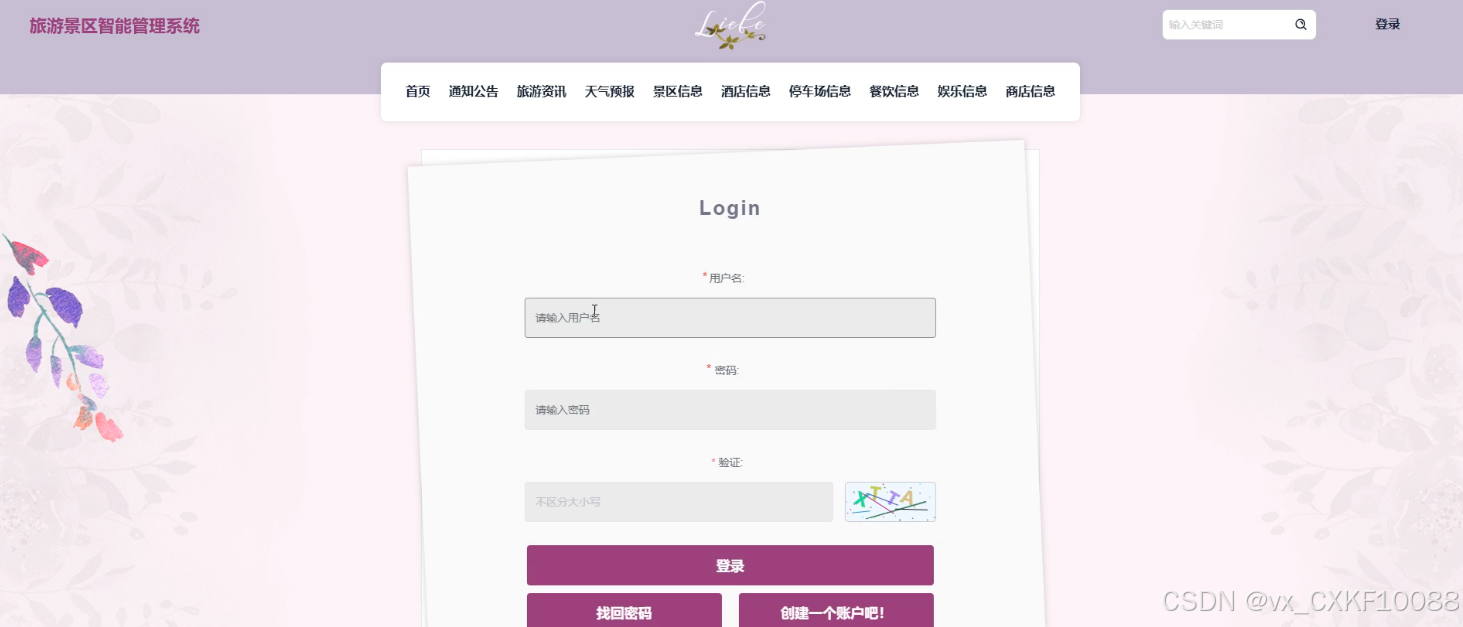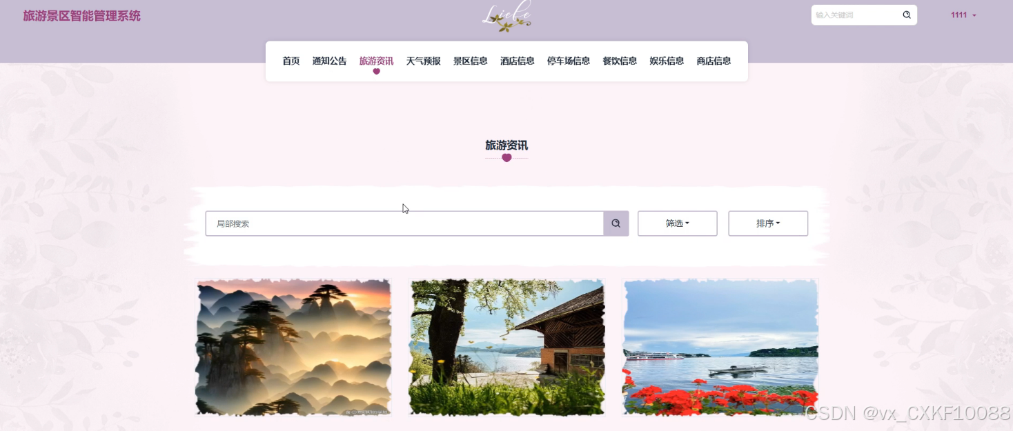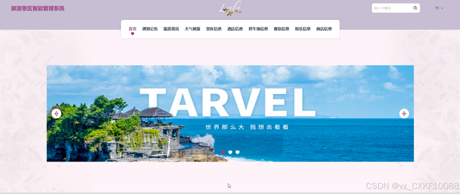 - 首页:用户在首页上可以查看各种旅游相关信息,包括景区信息和旅游资讯,为他们的旅行计划提供参考。