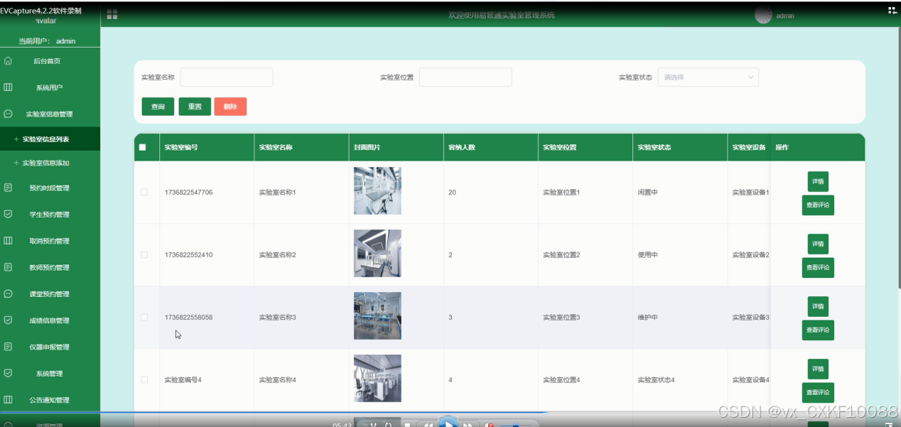 3. 实验室信息管理:管理员可以新增、编辑或删除实验室的信息,确保实验室信息的准确性和及时更新。