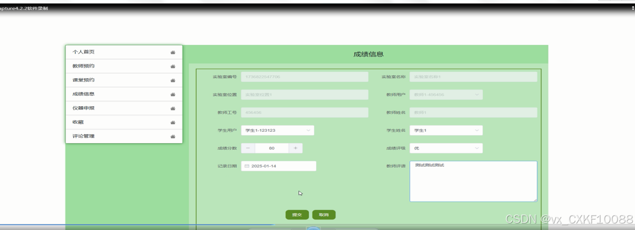 成绩信息: 教师可以查看学生的实验成绩,进行评定和修改。