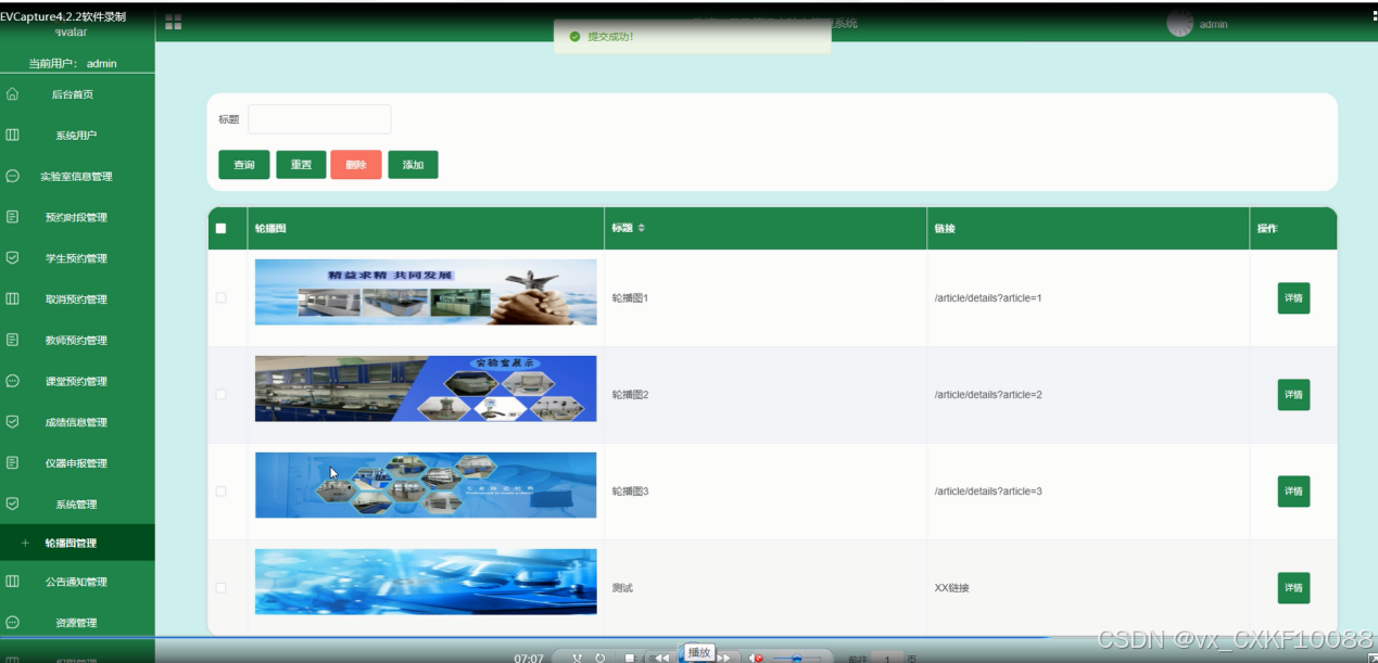11. 系统管理(轮播图):管理员可以设置系统首页的轮播图,更新系统展示的内容。