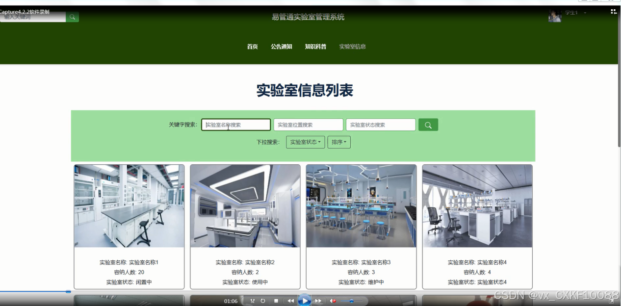 1. 首页:学生可以通过首页查看实验室信息、公告通知和相关内容,了解最新的动态。