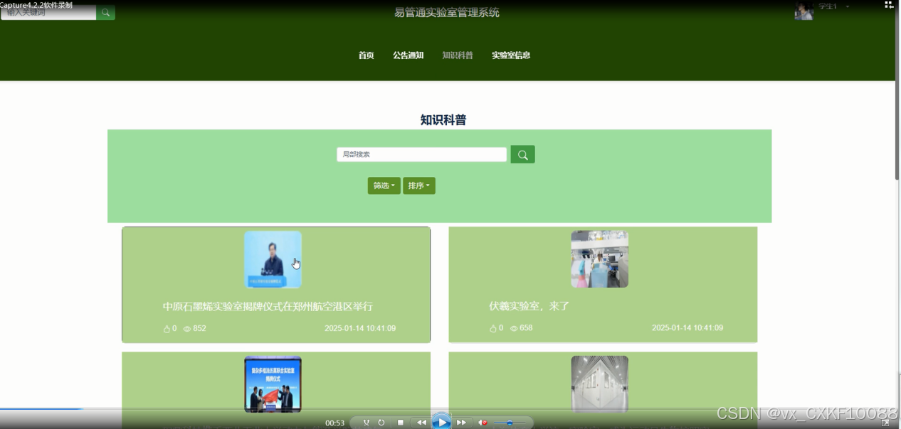 3. 知识科普:学生可以浏览科普内容,了解与实验室相关的各种科普知识。