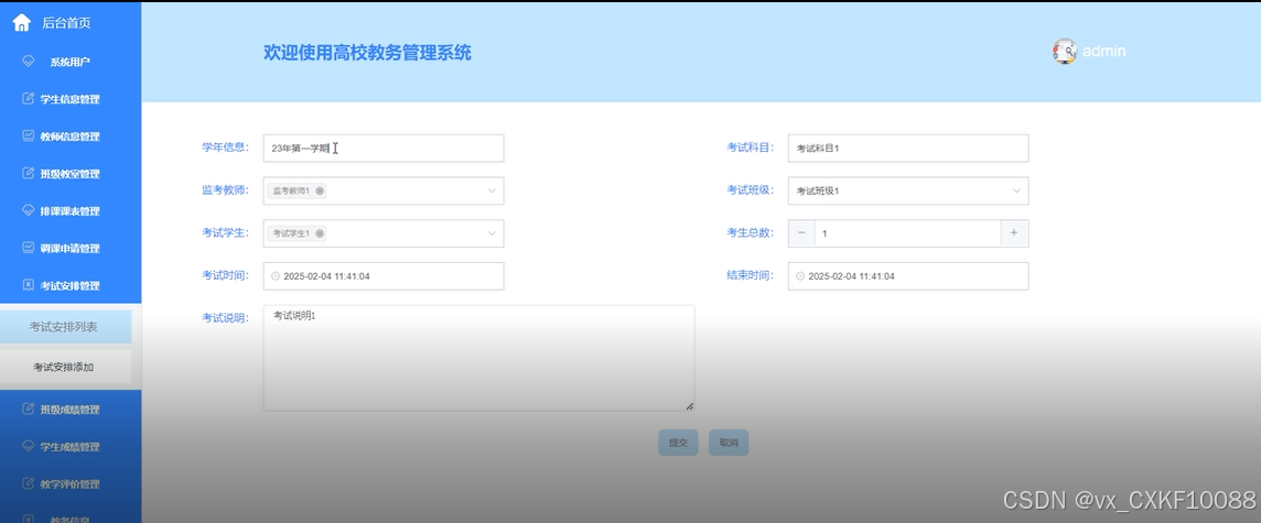 4.3.2考试安排管理界面