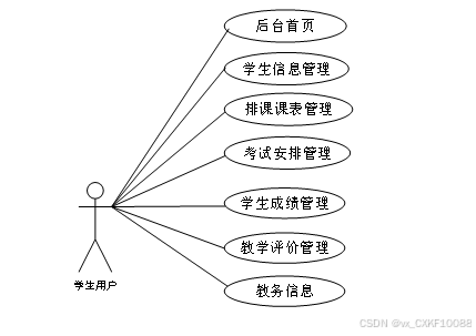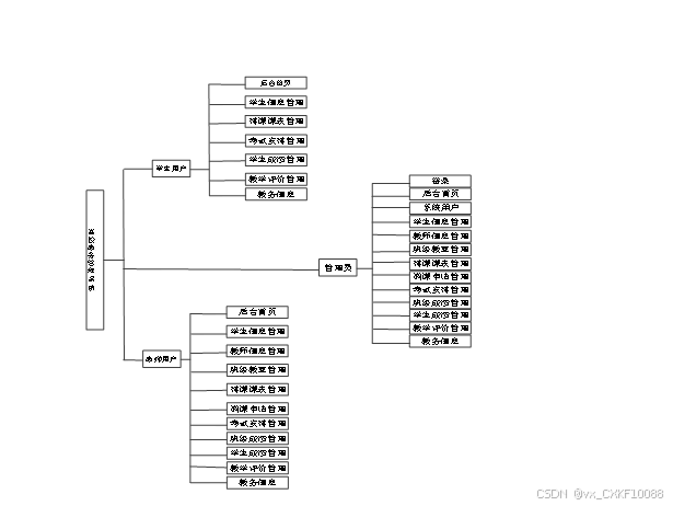 高校教务管理系统是一个教务系统的平台,用户可以看到学生信息,学生成绩等,具体的结构图如下: