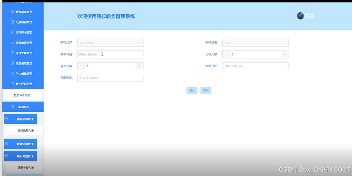 - 教学评价管理:教师对课程的教学效果进行评价。学生反馈:学生对教师的教学质量进行反馈。评价统计:生成教学评价的统计报告。