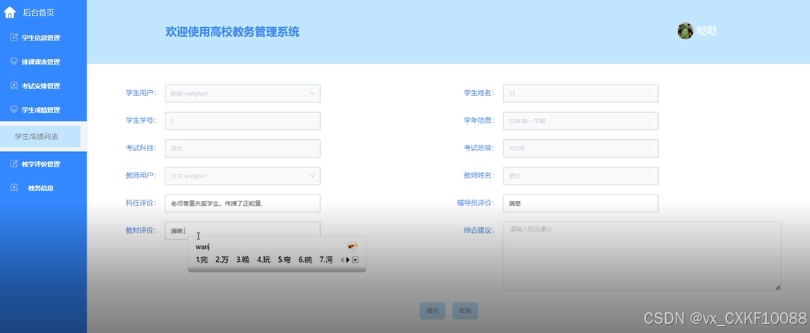 4.2.3 教务评价管理界面