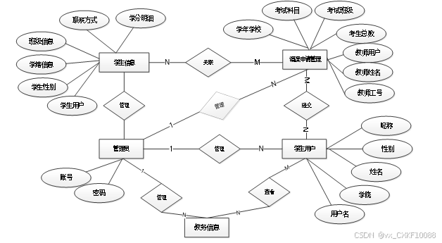 考试安排管理:添加、编辑和删除考试安排信息。考试科目管理:定义每个课程的考试科目。考试安排查询:按班级或课程查询考试安排。