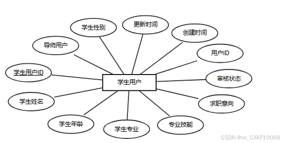 学生用户实体包括学生姓名、学生专业、专业技能、求职意向。学生用户实体如图4-16所示。