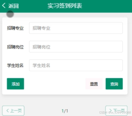 | 实习签到功能测试 | 1. 签到页面无数据时进入 | 页面提示“暂无签到信息” | 通过 |